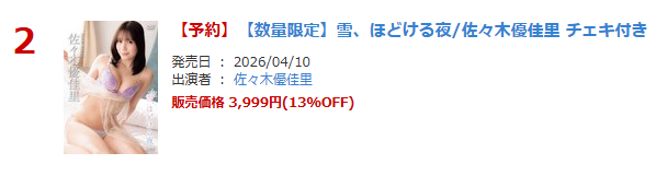 ◆佐々木優佳里 DVD「二人の秘密」(竹書房)